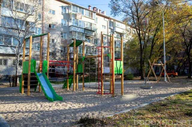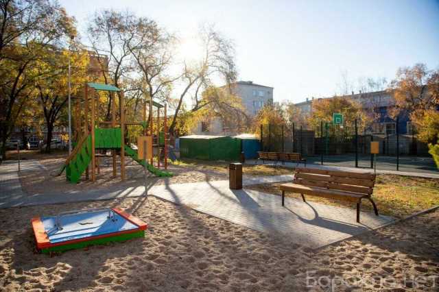 Двор оборудован новой детской площадкой.